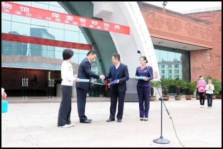 本网讯 ( 图\文 王溢)2013年10月26日上午,玉溪市博物馆与市第二幼儿园共同开展《走进博物馆——探索奇妙世界》为主题的活动。我馆领导专门安排了多名优秀讲解员为幼儿园师生及家长做了精彩的讲解,给参加活动的小朋友们发放了纪念品,组织了知识竞答并颁发了奖品,参加活动的师生、家长约400多人。通过本次活动,充分发挥博物馆爱国主义教育基地、科普教育基地作用,让更多小朋友及家长了解玉溪历史文化,增长见识,从小树立爱祖国、爱家乡意识。