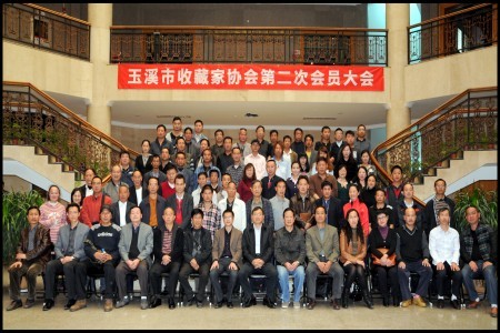 本网讯(图\文 吴建伟 杨霏 王溢)2013年11月3日下午,玉溪市收藏家协会第二届年会在玉溪市博物馆报告厅举行,会议由业永恒副会长主持。会议通过了协会新一轮换届选举结果,陈泰敏当选新一届收藏家协会会长,吴建伟当选秘书长。新会长陈泰敏对协会5年来的工作进行了总结,并通报了2013年玉溪市古玩艺术品博览会筹备情况,会后协会新领导班子与到会会员愉快合影。