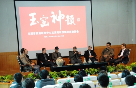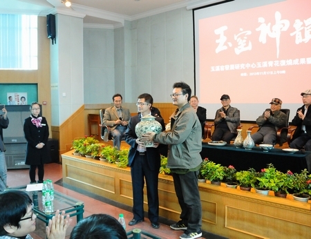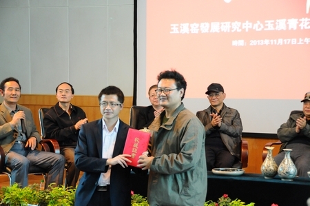 本网讯( 图\文 王溢 张雪娇)2013年11月17日上午9时,玉溪青花复烧成果鉴赏会在我馆报告厅举行;中央电视台《寻宝》栏目组鉴宝专家王春城、杨静荣、方书华,云南省文物局副局长马文斗,玉溪技师学院校长李华伦,云南大学副教授吴白雨,我馆馆长陈泰敏等领导及专家参与此次会议。与会过程中大家各抒己见,对玉溪青花的过去、现在、未来进行了回顾和展望,提出了一些新的见解和观点,对玉溪青花的复烧和发展有很大意义。玉溪窑发展研究中心赠与我馆一件复烧的玉溪青花罐,我馆为发展研究中心吴白雨教授发放了收藏证书。此次鉴赏会取得圆满成功。
