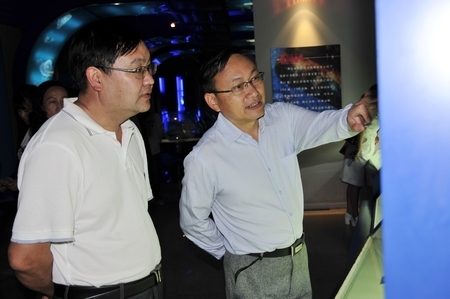 本网讯(图/王溢 文/张雪娇)2014年6月18日,曲靖市会泽县副县长和文体广电局局长一行在我市文化局方洪书记的带领下到我馆进行文化产业交流、考察、参观,考察了玉溪市博物馆、聂耳纪念馆、玉溪窑发展研究中心等地。