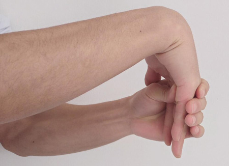 用一只手将另外一只手腕关节屈曲到90°,并保持30-60s;