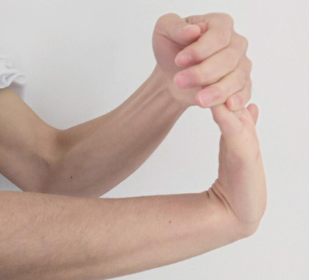 腕部放松,一只手辅助另外一只手屈腕、伸腕到做大角度,持续时间10-30s/次,重复10-20次;每次之间休息30s左右