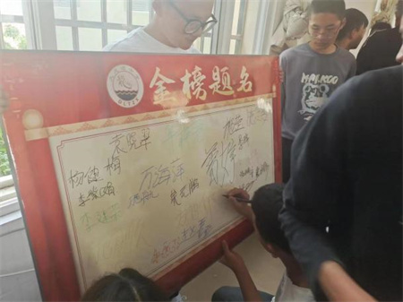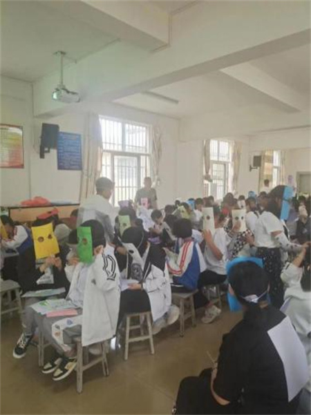 施秀英用诙谐幽默的方式为学生们上了一堂课,帮助他们打破拘谨放松自己。课上,采用暗示治疗的方法让学生以写、画的形式将自己最积极的一面表达在彩纸上,在创意录取通知书上写上自己想考的学校,再以“蒙面吐心声”、“我已被录取”等游戏让学生们缓解压力,互相增强合作意识和信任度;还设置了分享交流环节,学生结合上个环节的游戏说出自身的烦恼忧虑,让大家互相帮助,共同解决。同学们积极交流,现场一片笑声。活动结束后,师生们纷纷表示,这样的方式不仅能有效地排解他们的压抑情绪,还可以使大家的身心得到放松。