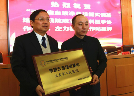 “云南省血液净化技能实训基地”的授牌成立,是玉溪市肾内学科的一大进步,基地的建立,是全国第一家血液净化专业化培训基地在玉溪的落户,也将为全省及周边地区每年培训肾内专科医师200名,护理人员600名。