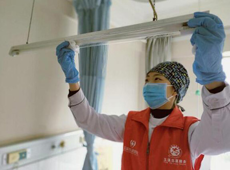 活动最后,控感护士带领大家对病区进行无死角消毒,全面防控,坚决克服麻痹思想和侥幸心理,切实做好住院病区疫情防控工作,确保住院患者安全。