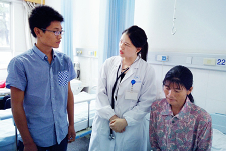 心内科谷青副主任医师正在对患者儿子做术后病情交代 照片上这位穿碎花布衬衣的中年女性名叫罗翠兰,是我院心内科的住院患者。在今年4月,罗翠兰在自家地里干农活的时候,常常感到阵阵的晕眩,起初,她认为是自己干活太累,只要休息一下就能好,也没太在意,直到阵阵晕眩随着时间的推移,逐渐发展成为晕厥,罗翠兰被紧急送往新平县人民医院,入院当天还发生心跳骤停,新平县人民医院的医生们在对翠兰实施紧急抢救暂时脱险后,根据病情,向罗翠兰的儿子建议:你母亲的心脏需要手术,赶紧送往玉溪市人民医院,那里才有技术力量完成手术救治。 一辆救护车载着随时可能发生心脏停跳的、虚弱的罗翠兰飞驰而至,医院急诊医学科接诊后,请心内科会诊诊断为病窦综合征而转入心内CCU。在心内科CCU里,罗翠兰再一次发生无明显诱因的心脏停跳,心内科主任郝应禄带领科室医生再次对罗翠兰实施抢救,并根据病情作出需要尽快安装心脏起搏器的治疗建议。 苏醒后的罗翠兰和儿子杨天龙一打听手术费用之后,立马傻了眼——手术及治疗费需要将近4万元,虽然罗翠兰有新农合可以报销一部分,但剩下的钱对于他们的家庭来说,实在是难以负担。看到罗翠兰的犹豫,郝应禄主任随即问道:“可是有什么困难?” 原来,罗翠兰家是新平平甸弥勒村里的低保户,她的丈夫在15年前就因智力残疾而丧失了劳动能力。值得欣慰的是,家里还有两个可心体贴的儿子。大儿子杨天龙自小成绩优异,考上了重庆西南大学信息技术专业。眼看着大三了,还一年毕业了就可以分担家里的压力,可祸不单行,上初三的小儿子杨天福却患上了系统性红斑狼疮,每月需要近2000元的医药费,家里的三个男性成员外出求学的外出求学,残疾的残疾,小的又生病,生活的重担全部压在了罗翠兰的肩膀上。 一听说新农合报销之后,还需要将近2万元医药费,罗翠兰和大儿子杨天龙一下就着急了起来。了解到罗翠兰的情况,郝应禄主任马上对原定手术计划作出了修改:按照心内科起搏器手术安装的常规,手术过程中需要先安装一个临时起搏器,起到对可能发生心脏停跳的保驾作用,再安装永久起搏器,而这个临时起搏器则需要患者花费尽3000元钱。郝应禄主任意识到这3000元对于罗翠兰一家来说,将会是一个大额数字,他作出了手术直接使用永久起搏器,不再使用临时起搏器的决定。 这个手术决定方案可以说是艺高胆大,如果没有娴熟的心内科手术技术,那是高风险的。在心内科团队强有力的技术保障下,罗翠兰是幸运的,手术非常成功,康复状况也非常好。心内科主任郝应禄还将罗翠兰的情况上报到院领导,希望能帮助她申请到“生命救助资金”,这样,加上新农合报销,以减轻罗翠兰费用方面的负担,给这个贫困的家庭带去希望。 (李岚) |