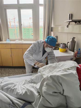 在防控疫情的同时,血液内科全力保证血液病患者诊断、治疗工作,尤其是恶性血液病患者的化疗、靶向治疗等工作正常、顺利、有序地开展。由于科室医生人手不足、工作强度明显增加,科主任王永志还主动承担起骨髓穿刺术、骨髓活检术等检查任务,以此减轻留守轮班医生的工作压力。