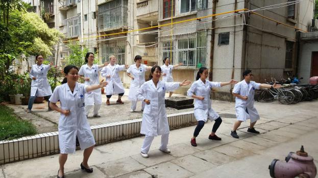 近日,在玉溪市人民医院针灸推拿科门诊后的空地上,一群练习气功“八段锦”的医护人员引起了人们的注意。这是医院针灸推拿科的医护人员在倡导中医文化的同时,也将中医强身健体的“妙招”推广。