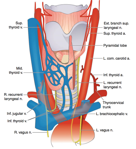 甲状腺在颈部的解剖示意图