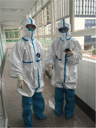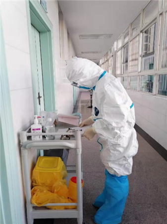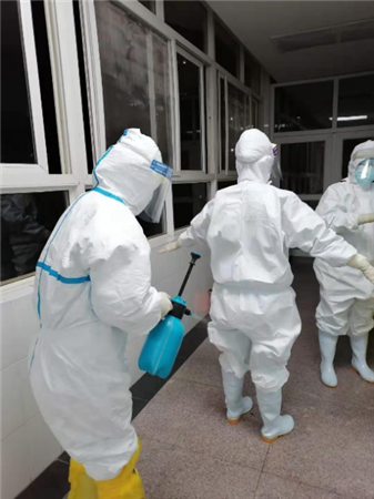 为了减少进出人员,保护姐妹,他们自己搞卫生,自行消毒,做到医护人员及保洁员一身兼。