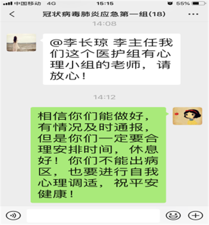 护理部在李长琼(共产党员)主任带领下,第一时间成立护理防控应急小组,积极抽调护理人员参与隔离病区救治和发热门诊工作中,与隔离病区护理姐妹建立微信群,密切关注感染病区和发热门诊护士的工作、生活情况,及时掌握动态,帮助她们实时解决存在问题。