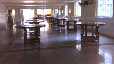 食堂原有的座椅已全部撤走,来食堂的人员购完即走,避免集中用餐,最大限度降低疫情传播风险。