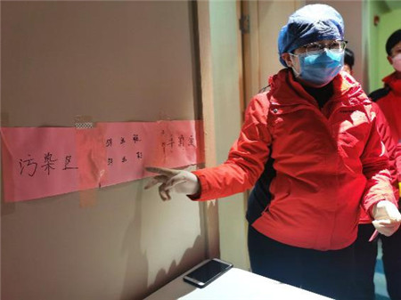 抵达武汉驻地酒店后,李玲被推选为二片区感控组长。她积极发挥专业特长,构思医疗队生活区域的感控工作该如何开展。开展工作期间,主动咨询了医院质控部的意见和建议,指导感控小组成员进行驻地酒店的消杀工作;为队员们进行出入驻地酒店的消杀防护工作和要求、感控标识、公共区域以及房间内部三区两通道的划分标识等知识培训,工作开展得有声有色,得到了队友及医疗队领导的肯定。