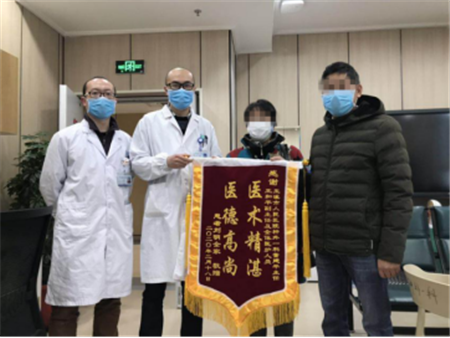 破裂动脉瘤介入手术病人治愈出院送科室锦旗表示感谢