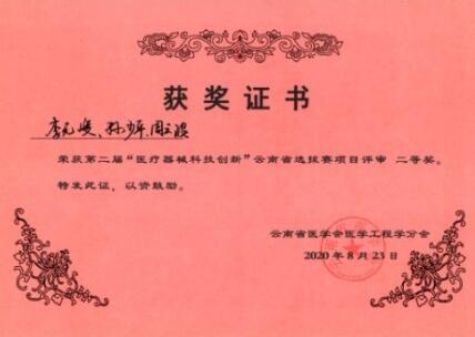 4、周云波等获第二届云南省“医疗器械科技创新”大赛二等奖