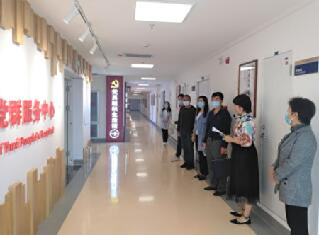 座谈交流会后,来访嘉宾在党委委员、党委办主任桂鸿斌、组织部主任闫若玉陪同下参观了位于新大楼的党员志愿者服务岗、党群服务中心,详细了解了党员组织生活馆、思想政治教研室等服务区域的设置目的、用途,并观看了我院原创的党建宣传片《党建引领 凝心聚力 打造人民满意医院》。