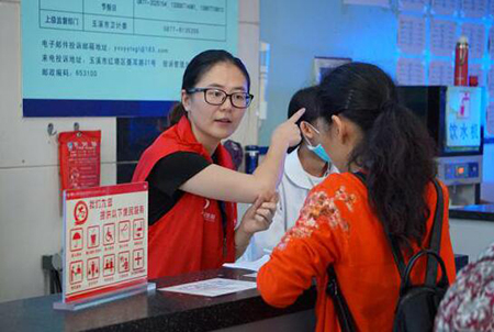 在门诊大厅设置党员志愿服务岗、党员先锋岗,党员轮流利用业余时间到患者密集区域的开展导诊、用药咨询、一卡通运用等志愿服务活动,改善患者看病就医感受;全院党员积极开展社区报到,根据社区群众的“需求清单”,为社区群众提供点对点、一对一服务;团干部到澄江居乐大河流域及抚仙湖畔开展“绿水青山就是金山银山”青年志愿服务行动;全院形成“抓职工—促科室(单位)—带家属—强全院”的文明单位“细胞工程”创建,干部职工对文明单位创建工作的参与率≥95%。