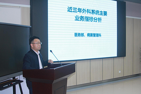 医务部、运营办、医保部、资产管理部从各自分管领域对外科系统科室运行现状情况进行分析,19个外科系统科室分别从科室发展现状、存在困难及未来发展思路进行了详细汇报。