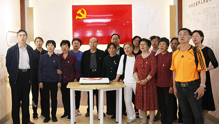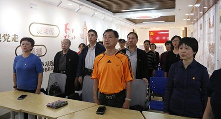 两位在4月入党的老党员在这次主题党日活动中分别渡过他们52周年、35周年的政治生日,并获得支部赠送的政治生日卡。最后,大家面向党旗,诵读党章(节选),并举起右手,重温入党誓词。
