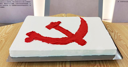 老党员们亲手制作的党徽蛋糕