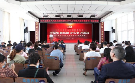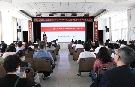 为认真贯彻落实开展党史学习教育集中培训的工作要求,深入学习习近平总书记在党史学习教育动员大会上的重要讲话精神,5月7日,玉溪市人民医院精心部署,周密安排,组织开展2021年万名党员进党校 党史学习专题培训。院领导班子成员、中层干部,党总支书记、副书记,党支部书记、副书记、支委以及不上班的职工等400余人参加培训。同时,按照公立医院帮带民营医院党建工作的通知要求,邀请爱尔眼科党支部参加培训宣讲,将帮带对象党员纳入此次“万名党员进党校”培训中。