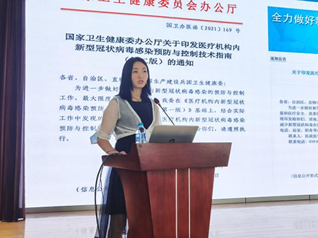 全科医疗科陈斌主任首先以《新型冠状病毒肺炎诊疗方案》(试行第八版修订版)解读为题,从目前国内外感染现状、临床特征 、诊断及案例分析等方面进行详细讲解。质控部杨静老师为大家解读了“医疗机构内新型冠状病毒感染预防与控制技术指南(第二版)”,从常态化疫情防控下感控管理的角度,在防护要求、环境要求、消毒隔离等方面进行了再次强调。感染性疾病科赵丽惠主任为大家进行了“新型冠状病毒肺炎防控方案(第八版)”的解读,在强化隔离医学观察、密接的密接精准管理等方面进行重点讲解。