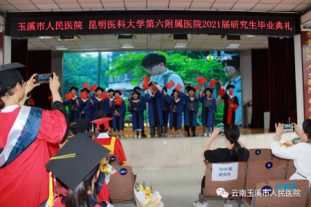 6月29日上午,玉溪市人民医院 昆明医科大学第六附属医院庆祝建党100周年暨2021届研究生毕业典礼在7号楼九楼礼堂举行,由我院自主培养的18位博硕士研究生正式毕业。