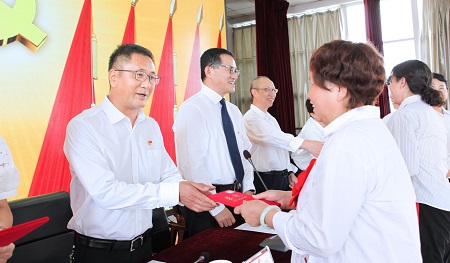 会上,党委书记范永光代表院党委向受到表彰的先进个人和集体表示热烈祝贺,向获得“光荣在党50年”纪念章的老党员致以崇高敬意,向全院各级党组织和广大共产党员致以节日问候。他说,党的十八大以来,习近平总书记两次亲临云南考察,作出一系列重要讲话指示,给全省上下巨大鼓舞、为云南发展注入强劲动力。全院各级党组织和广大共产党员要牢记总书记殷殷嘱托,充分发挥战斗堡垒作用和先锋模范作用。在“一切为了人民健康”政策的指引和推动下,办医71年来,医院各项事业取得历史性成就、发生历史性变革,玉医始终坚持党的领导、紧跟党的步伐,实现跨越式发展;始终听从党的召唤,为党和国家发展贡献玉医力量;始终赓续红色基因,凝聚各级组织和全院党员干部职工力量砥砺奋斗。受到表彰的先进集体和先进个人,以实干实绩生动诠释了新时代共产党人坚定信念、践行宗旨、拼搏奉献、廉洁奉公的高尚品质和崇高精神,为全院广大共产党员树立了榜样。