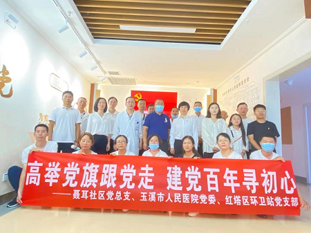 为庆祝中国共产党建党100周年,重温党的光辉历程,歌颂党的伟大成就,推进党史学习教育深入扎实开展,玉溪市人民医院党委联合聂耳社区党总支、红塔区环卫站党支部组织在玉溪市人民医院党群服务中心开展“高举党旗跟党走 百年党史寻初心”为主题的系列活动。