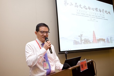 本次大会学术委员会主席、中国卫生协会治疗与咨询专业委员会文化与治疗学组副组长,中国学会临床学注册工作委员会主任委员、北京理工大学人文社会科学学院贾晓明教授宣布大会开幕。