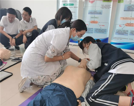在2个小时的课程里,教官先后给同学们讲解了徒手心肺复苏、AED(除颤仪)、海姆立克急救、外科创伤急救等理论知识,并开展技能操作示范,通俗易懂的教学方式激发了青少年对医学常识和急救技能的浓厚兴趣,每个同学都在培训教官的指导下,开展现场技能操作体验,同学们很好的掌握了徒手心肺复苏和常用急救技能,提高了医学素养,参加活动的同学纷纷表示今后他们会将学到技能用于救助需要帮助的人,将知识和爱心传递下去。