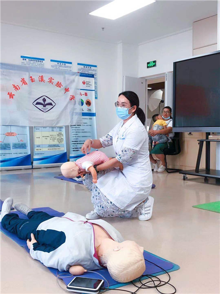 在今年开展的党史学习教育中,玉溪市人民医院党委以高度的政治责任心和使命感开展好工作,从群众的“急难愁盼”出发,认真履行社会责任,确保把好事办实,把实事办好,办到群众心坎上。针对院党委提出的打造“玉医专家送健康”品牌服务项目。规培实习进修生直属党支部依据自身教学特点,推出了面向公众的急救技能项目培训。截至目前,已经面向社会开展6批次“普及徒手心肺复苏、成‘救’你我”公益培训,涉及玉溪实验中学、市党群服务中心、移动公司等多个单位,深受社会各界好评。