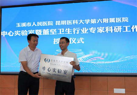 2021年9月10日上午,玉溪市人民医院中心实验室暨董坚卫生行业专家科研工作站授牌仪式圆满完成,标志着医院乃至玉溪市从此有了自己的综合性医学科研实验室。
