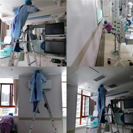 在重症病区,分别对病区房间,包括办公区区域、仪器设备间、值班室、库房、卫生间等进行了无死角大扫除;在新生儿病区,除了对地面、物表进行彻底的大消毒外,还对所有的仪器设备进行了彻底的消毒,考虑到婴儿的特殊性我们对操作设备进行了重点防控,员工们更是拿起了工具,不放过每一颗螺丝钉,对部分设备进行了“拆卸”消毒,不放过任何一个死角。
