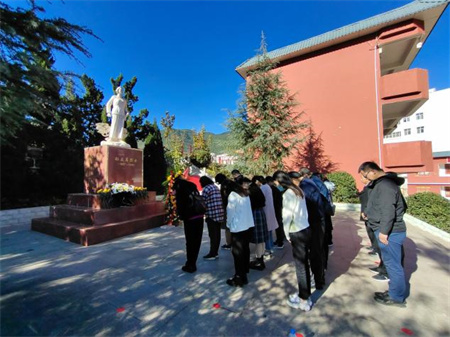在易门县小街乡孙兰英烈士纪念馆凭吊烈士,全体党员在孙兰英烈士雕像前献花、鞠躬、默哀,深切缅怀了孙兰英烈士,并在台琪瑞副书记带领下重温入党誓词。