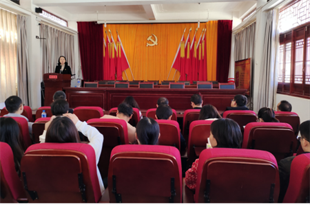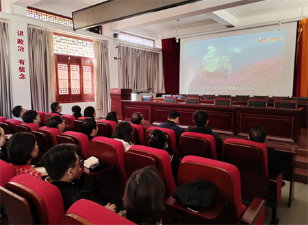 在纪念馆电教室,党委副书记杨玲结合此次主题党日活动,为大家上了一堂现场党课,重点宣讲了玉溪市第六次党代会精神。杨玲副书记从玉溪经济社会发展的历史和现状着眼,以鲜活的案例和详实的数据诠释了玉溪市第六次党代会所确定的“绿色发展、工业强市、共同富裕”核心战略及“一极两区”的奋斗目标,让大家对大会精神及如何进一步解放思想、凝心聚力、担当实干有了更深刻的认识和领悟。最后,杨玲副书记号召全体党员一定要牢记宗旨,强化政治担当和责任担当,以实际行动继承和发扬革命先辈忠于革命、忠于党和艰苦奋斗、勇于牺牲的革命精神,展现医疗卫生事业领域党员好形象,奋力为玉溪“一极两区”建设贡献力量。