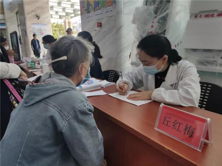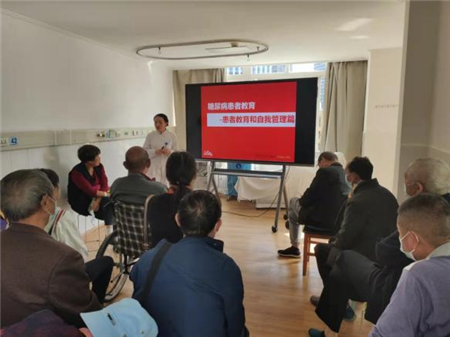 内分泌代谢科主任丘红梅带领科室医护骨干现场免费为患者测血糖、糖化血红蛋白、专家咨询、进行蓝光行动中国糖尿病风险筛查等。下午内分泌代谢科护士长李锡花为患者进行了精彩的健康宣教—糖尿病管理,同20余位患者进行疾病管理知识分享及经验交流,帮助患者树立管理疾病的信心,提升疾病管理能力。