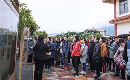在凤凰广场“哀牢烽火”大型浮雕前,党员同志们参观了由一面鲜红的党旗和帽盒山党支部成立、烈士们英勇斗争、新平县南区人民政府成立、公审匪特大会和土地改革5个场景组成的浮雕,听取和学习哀牢山红色革命的战斗历程。
