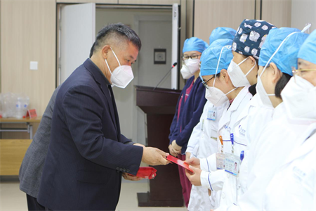 院党委书记刘世伟表示,今天,市总工会、市卫健委一行为我院送来了新春的祝福,是对我院医务人员的一种鼓励;这一年,在市委、市政府、市卫健委的正确领导下,在市总工会的关心支持下,面对形式多变的新冠肺炎疫情,经受住了各种考验,首战告捷;12月以来,面对新冠疫情的凶猛冲击,医务人员克服重重困难,付出了艰苦的努力,取得了疫情救治阶段性的成效;在此,刘世伟代表我院党政领导班子向市卫健委、市总工会的关心支持表示衷心的感谢,向奋斗在守护人民群众生命安全最前线的医务工作者表示崇高的敬意,并祝福全体医务人员新春快乐,阖家幸福。