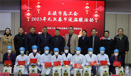 新春将至,岁寒情暖。1月18日上午,新春佳节将来临之际,玉溪市总工会主席孙金会,副主席郭荣兴,服务中心主任陈仑,市卫生健康委副主任尹义宪,市卫健委工会主席张星亮等一行莅临我院,看望慰问春节期间坚守在救治新冠病毒感染患者一线的医护人员,为他们送上亲切的问候与节日的祝福。院领导班子及行政职能部门负责人参加了慰问活动,会议由党委副书记、工会主席杨玲主持。