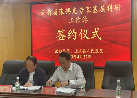 2023年4月27日,“云南省张锡光专家基层科研工作站”在通海县人民医院正式成立,我院副院长张锡光、通海县政府领导、通海县人民医院院长、通海县卫健委的领导、通海县人社局及我们医院骨外二科的医护专家团队出席。