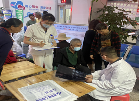 张锡光与通海县人民医院进行签约仪式,随后对通海县人民医院全院医护人员进行《膝骨关节炎的阶梯治疗的解读》2小时的专业授课,最后为通海县老百姓进行200人左右的义诊工作。