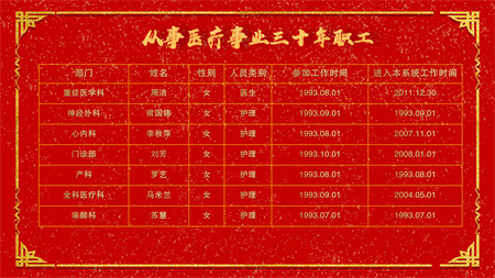 医院全体党政领导班子为2023年度杰出医护技人员、从医或来院工作30年人员职工颁发了奖状和证书。