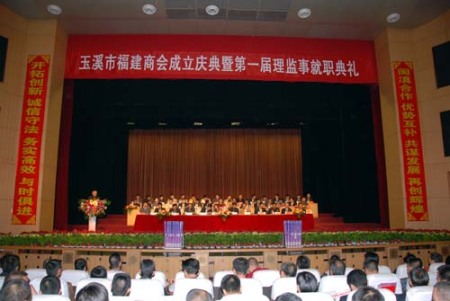 玉溪市福建商会成立于2009年3月18日,是在玉溪兴业发展的闽籍客商为维护共同的合法经济利益而自愿组织的非赢利性社会团体组织。由玉溪市商务局、贸易促进委员会指导组建,在玉溪市民政局注册登记,接受监督。玉溪市福建商会是福建省在玉溪市第一家异地商会。目前为止,在玉溪的闽籍商户已达2000多户,总人数在1万人以上,经营项目涉及冶金钢铁、茶叶食品、陶瓷建材、装饰装修、五金机电、灯饰电器等领域。现在商会共有会员194人,其中理事43人,常务理事22人,并且商会还在不断发展壮大中。