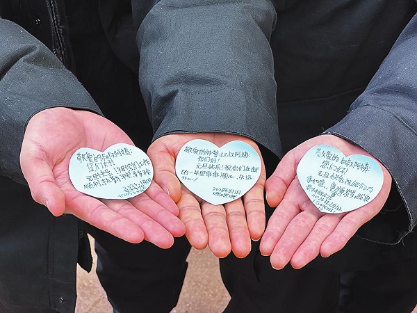 暖心纸条致民警 元旦执勤添温情