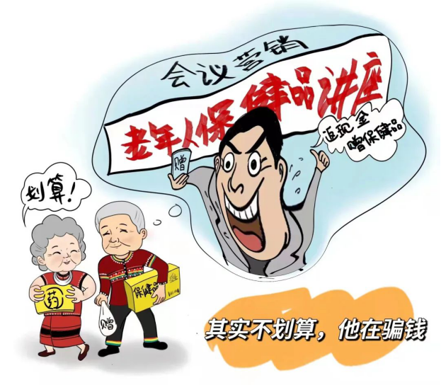 骗子前期通过各种手段了解老人的需求和身体健康状况,通过赠送米、面、鸡蛋等小礼品,陪伴聊天解闷等方式取得老年人的信任后,开始推荐产品,打着祛病强身、偏方有奇效等幌子夸大“保健品”的功效,促使老年人购买保健品。