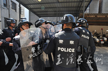 为提高公安队伍反恐应急处突能力,做好涉恐涉爆涉毒重点人员排查整治专项行动工作,3月以来,江川县公安局对从全局各部门抽调的30名民警组成的反恐应急处突队伍进行了为期10天的反恐处突应急集中训练。(高磊 摄)