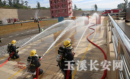 11月19日,2015年度全市消防部队及专职消防队执勤岗位练兵集中比武竞赛拉开帷幕。来自全市1支特勤中队、10支普通中队、10支专职消防队参加了比武竞赛。竞赛内容包括业务理论、体能项目、班组项目等。(通讯员 肖能详 摄)