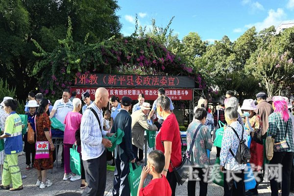 为进一步提高人民群众对《中华人民共和国反有组织犯罪法》的认识和对常态化开展扫黑除恶斗争的知晓度和参与度,8月8日,新平县扫黑办以“赶集日”为契机,组织政法机关、行业主管部门开展《中华人民共和国反有组织犯罪法》主题普法宣传,全力推动2024年“《中华人民共和国反有组织犯罪法》集中宣传月”活动走深走实,持续营造扫黑除恶浓厚氛围。