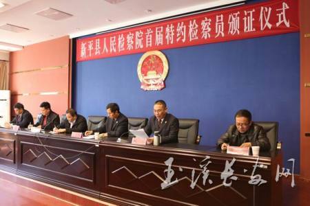 本网讯 为认真贯彻和落实《中共中央关于进一步加强中国共产党领导的多党合作和政治协商制度建设的意见》,有效促进检察机关文明执法、公正执法,科学履行检察职能,充分发挥民主党派和无党派人士参政议政、民主监督的作用,不断开创检察事业向前发展,根据《新平县检察院关于聘请特约检察员的实施意见》等相关规定和精神,通过与县委统战部和相关单位进行协商、推荐、组织考察等前期准备工作,12月17日下午,我院隆重举行了首届特约检察员的颁证仪式,县委统战部、县人大、县政协领导和市院监督办、特约检察员及其所在单位领导等出席颁证仪式。